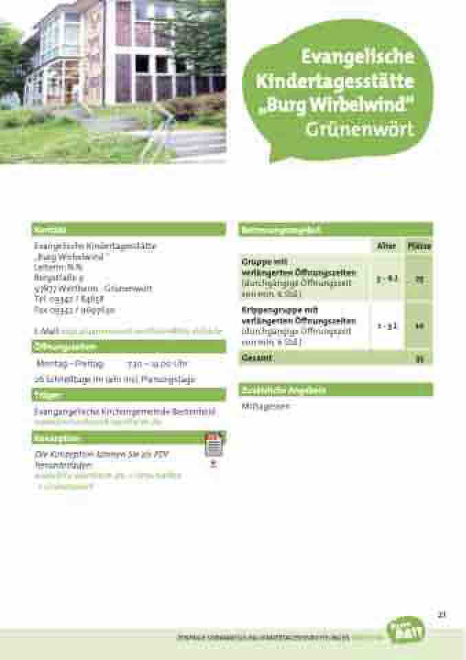 Evangelische Kindertagesstätte „Burg Wirbelwind“ Grünenwört